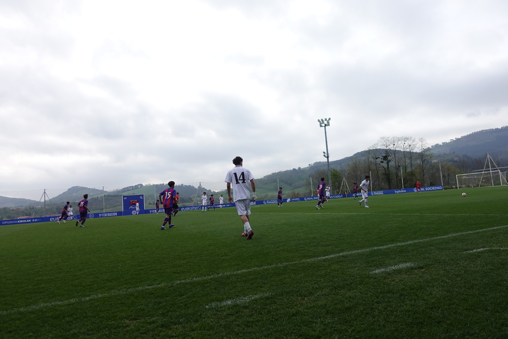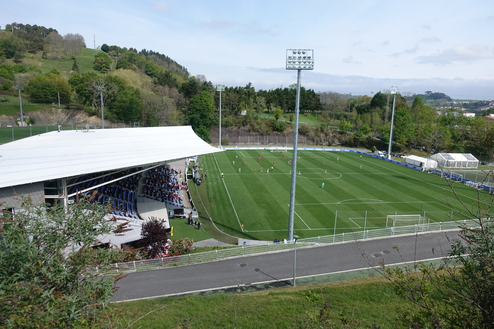 試合の会場はレアル・ソシエダの施設「スビエタ」内の高い位置にある天然芝グランドで、観戦スタンド、ロッカールームもあり、歴史を感じる雰囲気です。