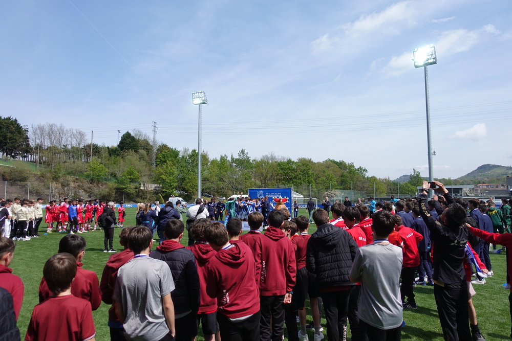 試合後には、閉会セレモニーにも参加し、多くの観客が見守る中、レアル・ソシエダトップチームイマノル監督や選手も参加し温かい雰囲気で大会を終えました。
