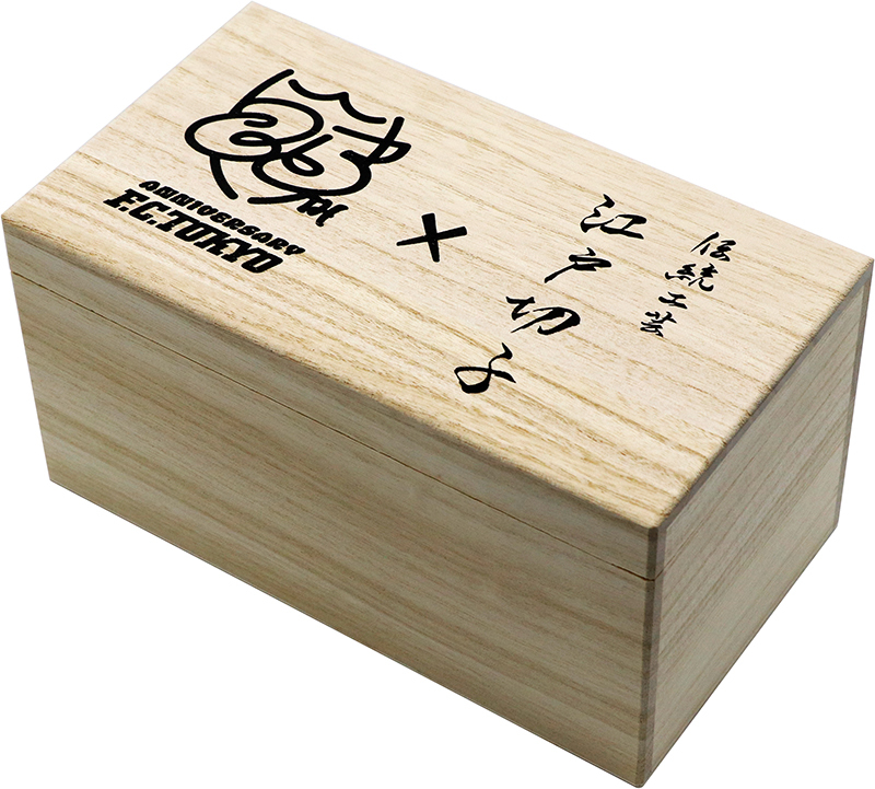 選手達がフィールド内を切り込み疾走するスピード感、巻きおきる風、ゴールネットに見事なウイニングボールが突き刺さる様、沸き起こるサポーターたちの歓喜の声、全てをこのグラスで表現しています。このグラスは太・細・長・短の線を複雑に交差させ、様々な場面を思い出したり感じ取って頂きたいという職人の想いが込められたFC東京オリジナル柄となります。