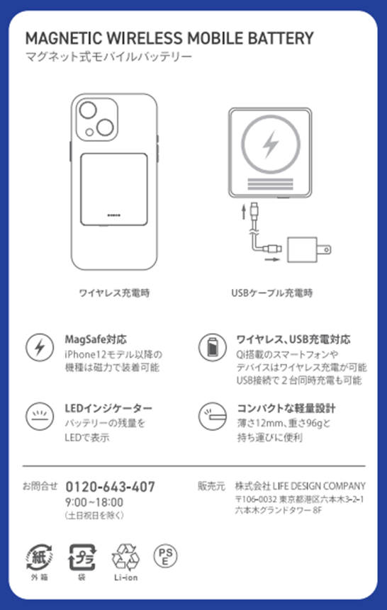 □マグネット式モバイルバッテリー