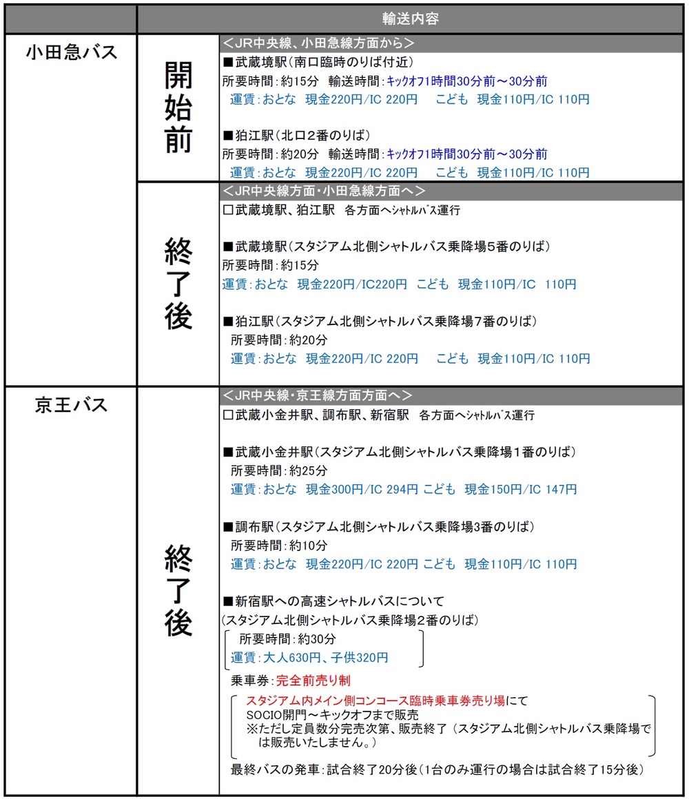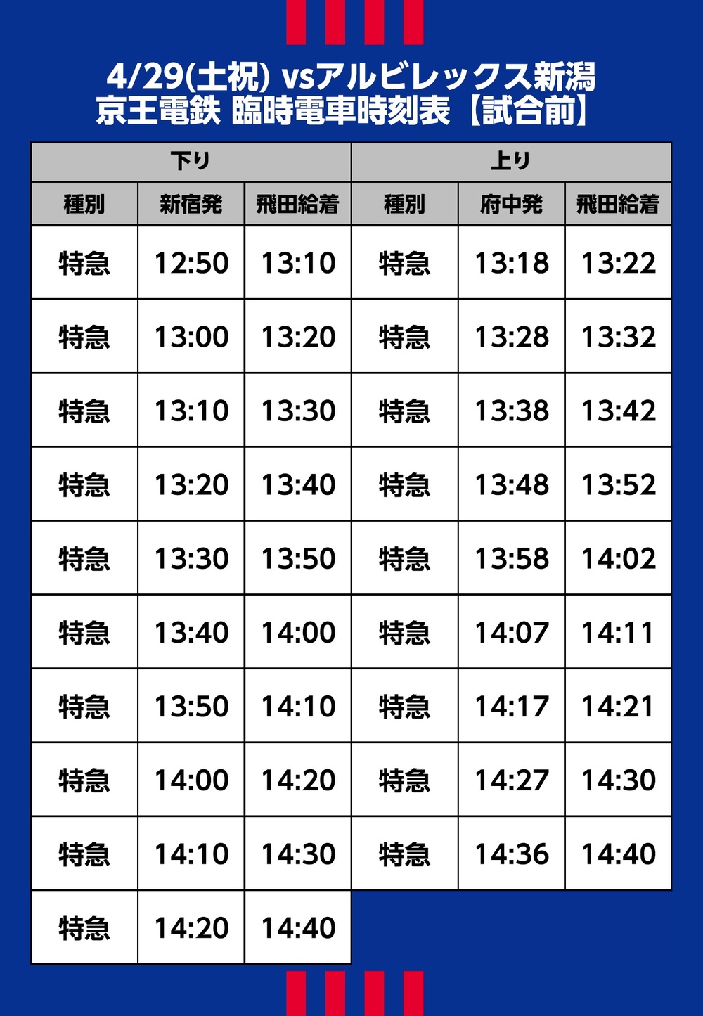 4月29日(土祝) 2023明治安田生命J1リーグ 第10節 vs アルビレックス新潟(15:00キックオフ/味の素スタジアム)にて運行される臨時交通アクセス(鉄道)、シャトルバス・路線バスについてご案内いたします。