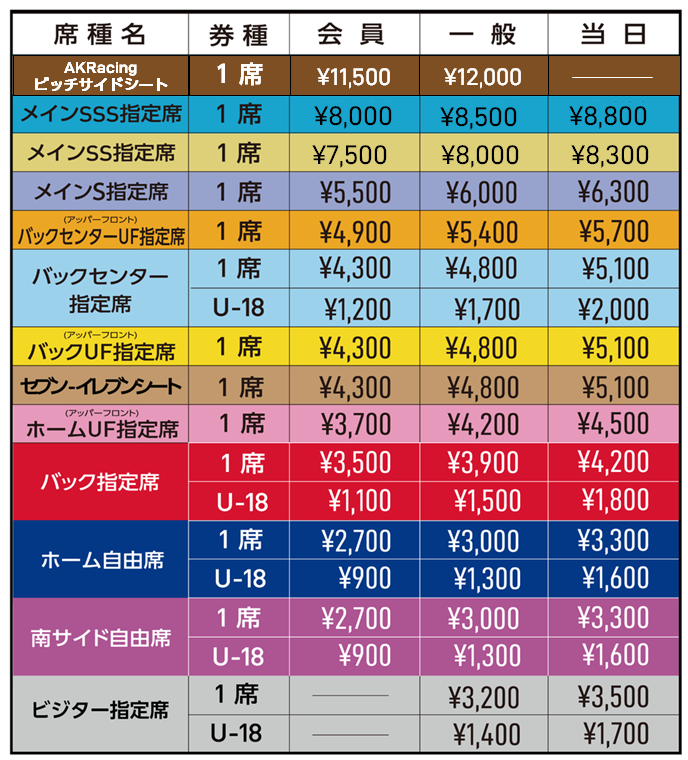本試合に関しまして、ビジター席は指定席とさせていただきます。予めご了承下さい。