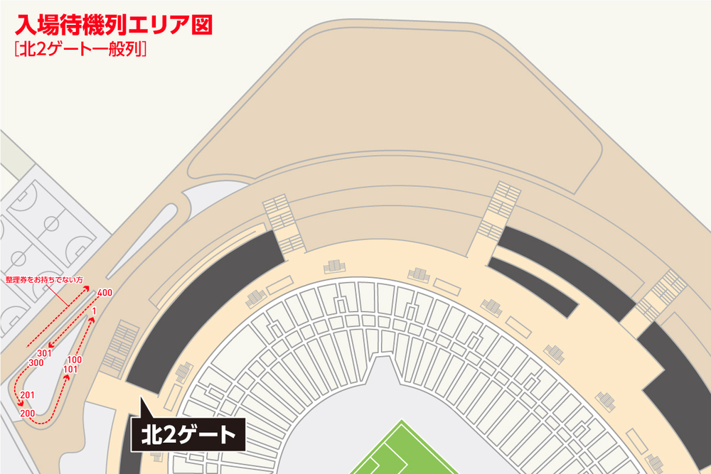 開門から一定時間はゲートごとに入場できる席種を規制いたします。お早めにご入場される場合はご自身の席種と入場いただけるゲートをご確認ください。