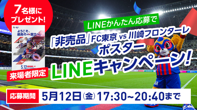 5月12日(金) FC東京vs川崎フロンターレにて、FC東京LINE公式アカウントを活用した来場者限定の抽選キャンペーンを実施します。