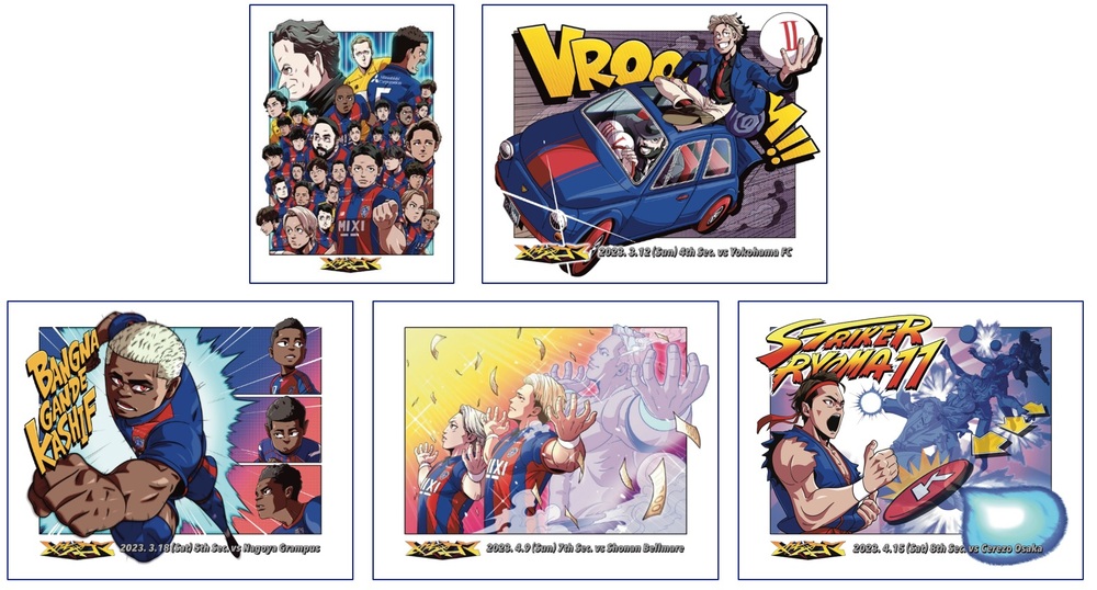 ※これらの「めちゃコマ」が各商品にプリントされています。なお、BIGキャンバスは開幕戦版のデザインのみとなります。