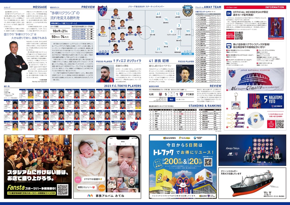 5月12日(金) 2023明治安田生命J1リーグ 第13節 vs川崎フロンターレ(19:30キックオフ/味の素スタジアム)のオフィシャルマッチデープログラムについて、下記のとおりご案内いたします。