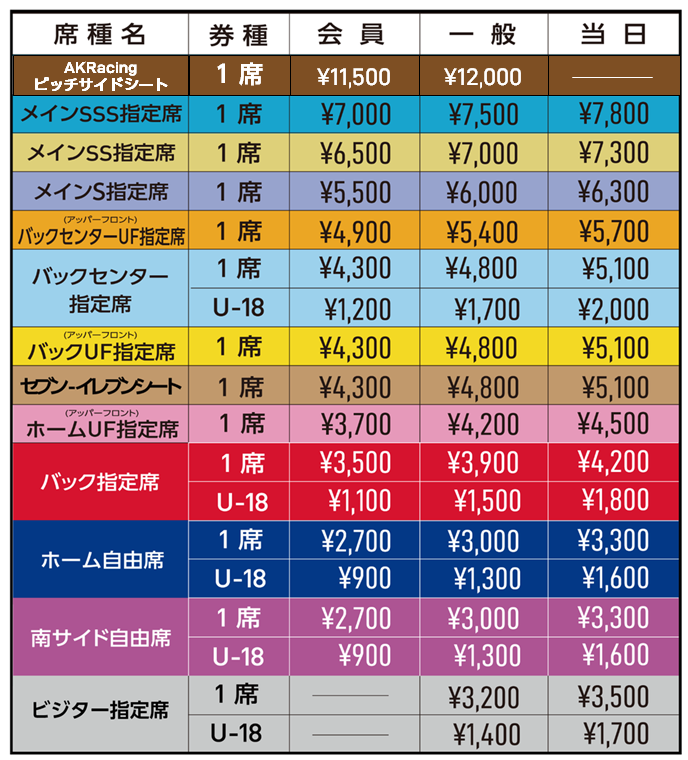 本試合に関しまして、ビジター席は指定席とさせていただきます。予めご了承下さい。