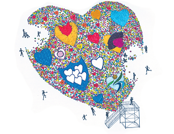調布市は、共生社会の充実に向けた“パラハートちょうふ”の取組の一環として、市内の福祉作業所などで活動するメンバーの作品を展示する「調布市パラアート展」を平成29年度から実施しています。今年度は、この「パラアート展」の応援企画として、だれでも参加できる『ビッグハートプロジェクト』を実施します。“パラハートちょうふ”にちなみ、カラフルなガムテープを使って手のひらサイズのハートをつくり、みなさんから集まったハートを繋ぎ合わせて大型アート作品を完成させます。このプロジェクトは、市内の福祉団体のほか、FC東京の選手や調布ゆかりのアーティストなど様々な分野にわたる数多くの方が参加しています。ご来場いただいたみなさまも、ぜひ大型アート制作を体験してみてください。