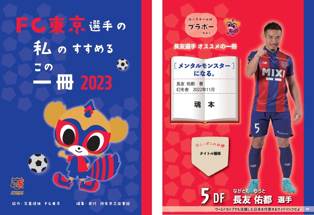調布市の観光PR展示とあわせて、調布市立図書館が毎年発行している「FC東京選手の 私のすすめるこの一冊2023」を配布します。