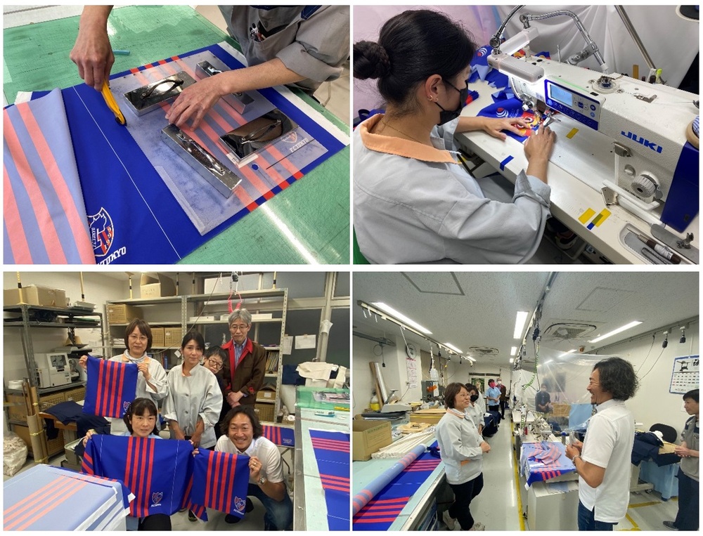 こうして完成された生地は社会福祉法人「東京コロニー」に届けられ1つ1つ丁寧にバッグに仕上げられます。ファン・サポーターのみなさまのご協力のもと”パス”を繋いでバッグが完成!