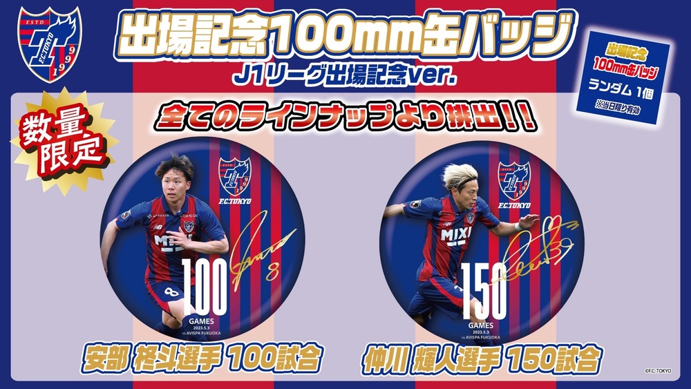 6月3日(土)2023明治安田生命J1リーグ 第16節 vs横浜F・マリノス(15:00キックオフ/味の素スタジアム)にて、通常のグッズ売店・ガチャガチャコーナーはもちろん、安部柊斗選手100試合出場記念 Made in ピエール・エルメ「チョコレートのシュークリームを販売いたします。