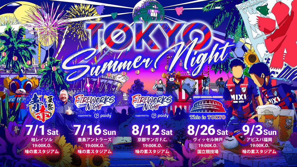 7月以降に開催するホームでのナイトゲーム5試合について、夏の夜のサッカー観戦を楽しんでいただく「2023 TOKYO SUMMER NIGHT」として開催いたします。スタジアムを彩る花火や光の演出、音楽、フード、ビールなど、夏の夜を最高に楽しめるイベントをお楽しみください!