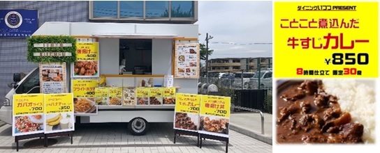 当キッチンカーは、府中駅徒歩1分にある「ダイニングいつつ」の移動販売車として出店しております。お店の人気メニューをキッチンカーで販売できるためラインナップもとても豊富です。府中産の野菜など地産地消、地域に根付いたお店作りをコンセプトにしています。今回提供する「カレー」と「唐揚げ」は、当店で皆様から好評をいただいている人気の商品です。じっくり仕込んだ味をぜひご賞味ください。