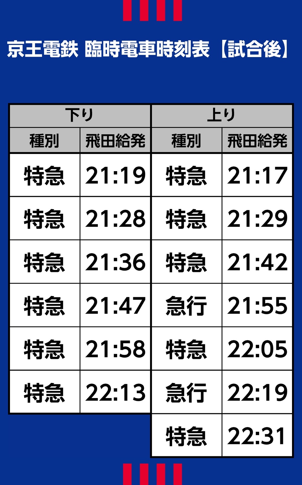 上り…飛田給発21:17~22:31の特急/計7本