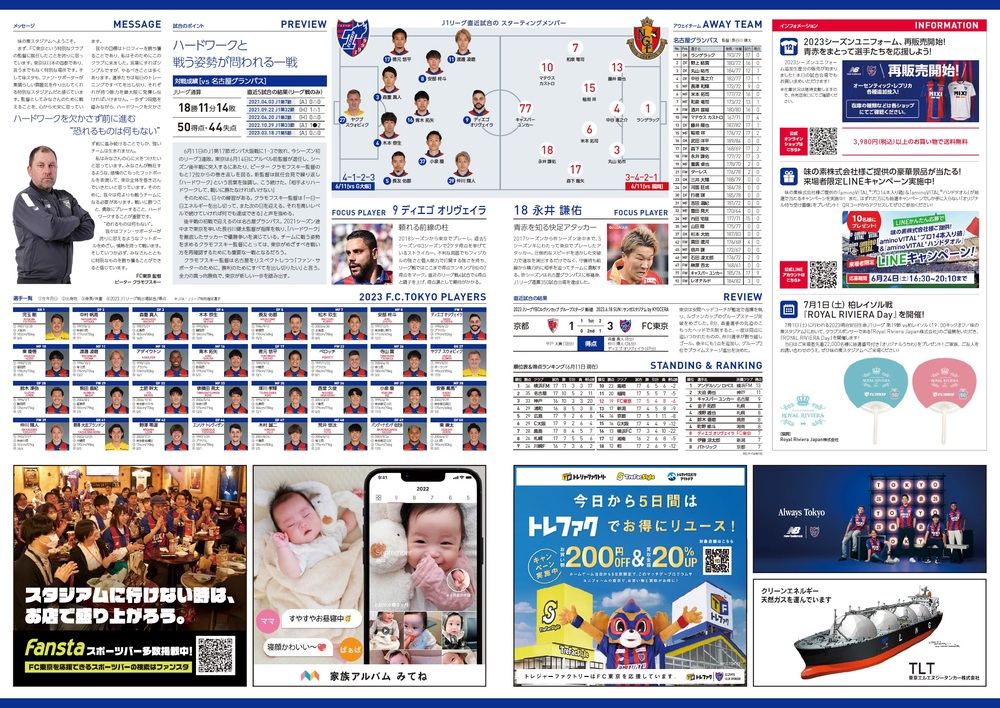 6月24日(土) 2023明治安田生命J1リーグ 第18節 vs名古屋グランパス(19:00キックオフ/味の素スタジアム)のオフィシャルマッチデープログラムについて、下記のとおりご案内いたします。