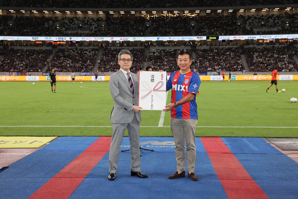 FC東京のクラブビジョンのひとつである、サッカー通じた青少年の健全な心身の発達、スポーツ文化の振興活動に賛同していただき、きらぼし銀行より子どもたちのための育成資金がFC東京へ贈呈されます。