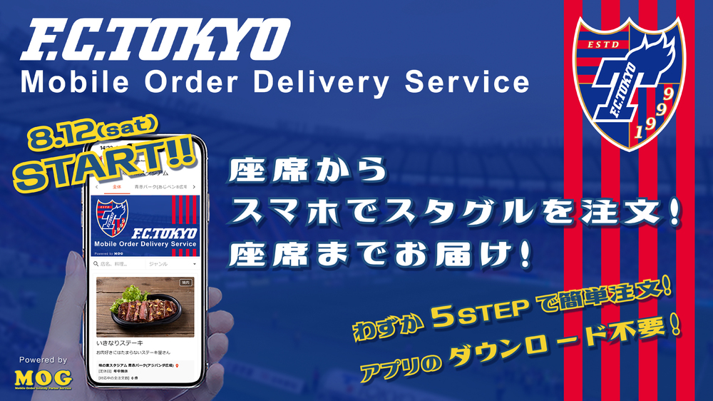 今回、試験導入するフードデリバリーサービス「MOG(モグ)」は株式会社MONOCREAが開発・提供しており、来場されるみなさまに「新しい観戦体験」をお届けいたします。