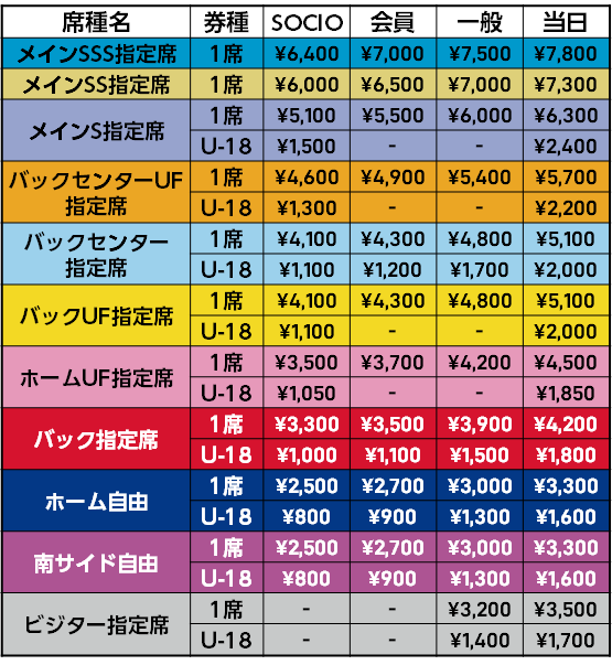 本試合に関しまして、ビジター席は指定席とさせていただきます。予めご了承下さい。