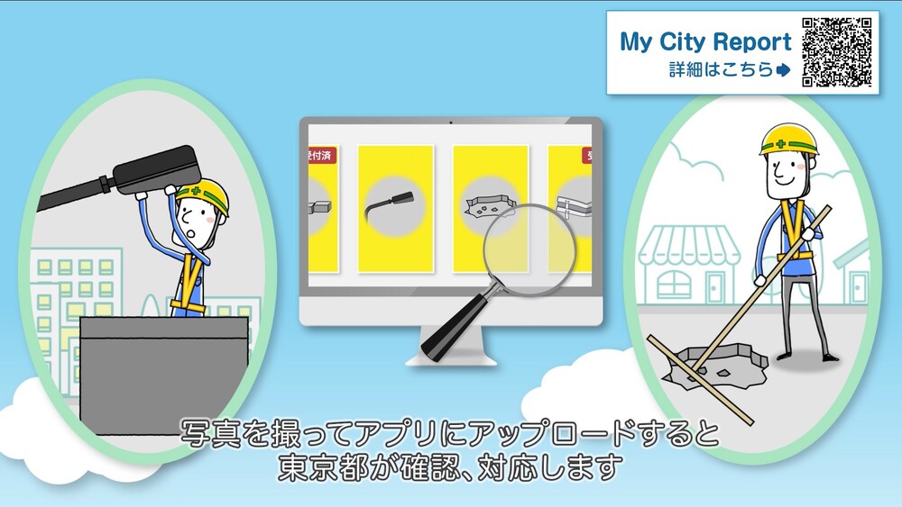 東京都建設局と連携して、「道路通報システム My City Report(MCR)」のPR活動に協力いたします。東京都では、道路や公園などの施設の損傷や不具合などをスマートフォンのアプリから写真で投稿することで、必要に応じた補修等を実施するための「My City Report」の取り組みを進めています。ぜひ多くの方にご協力いただき、みんなで住みやすいTOKYOをつくりましょう。みなさまのご理解とご協力をよろしくお願いいたします。