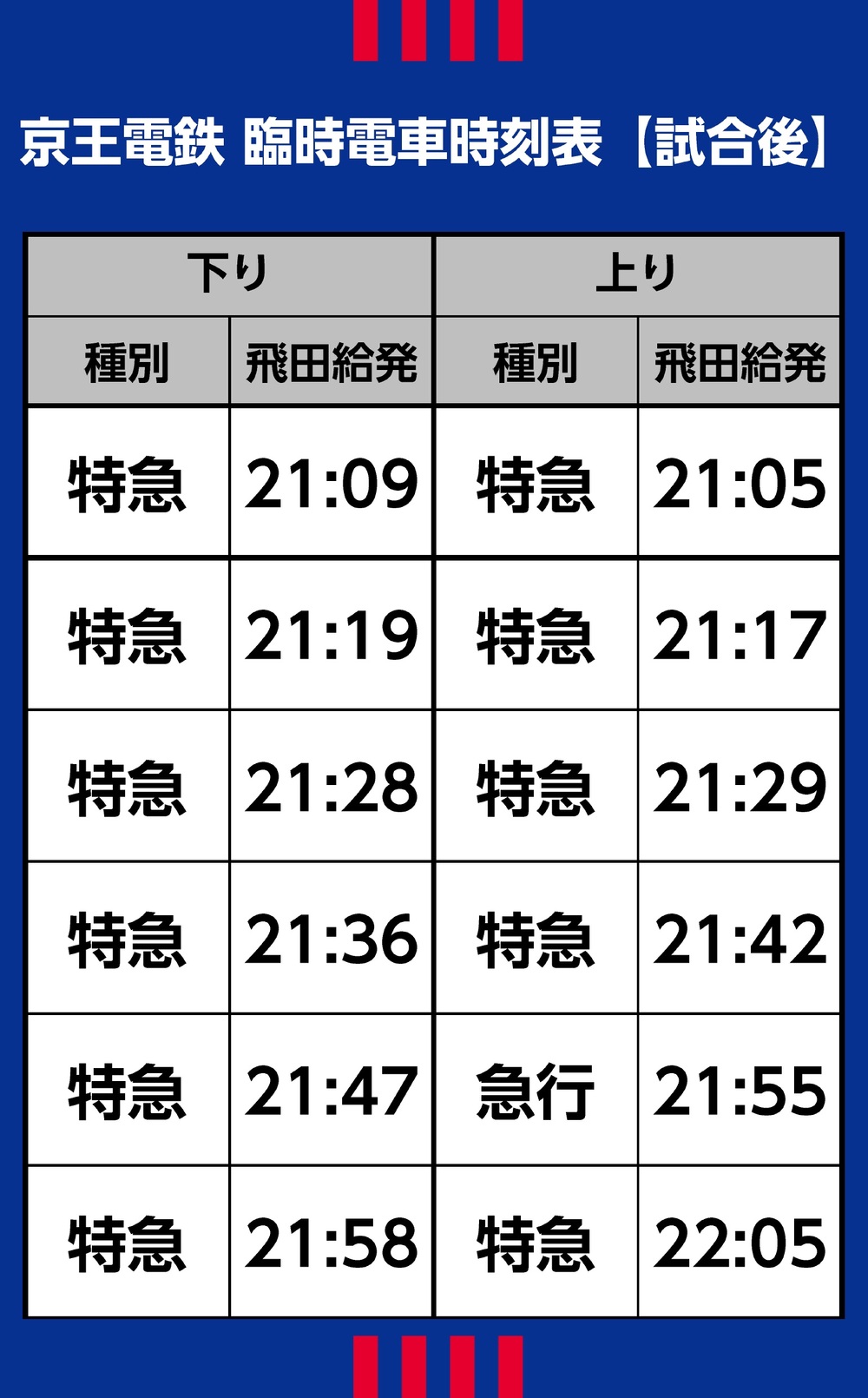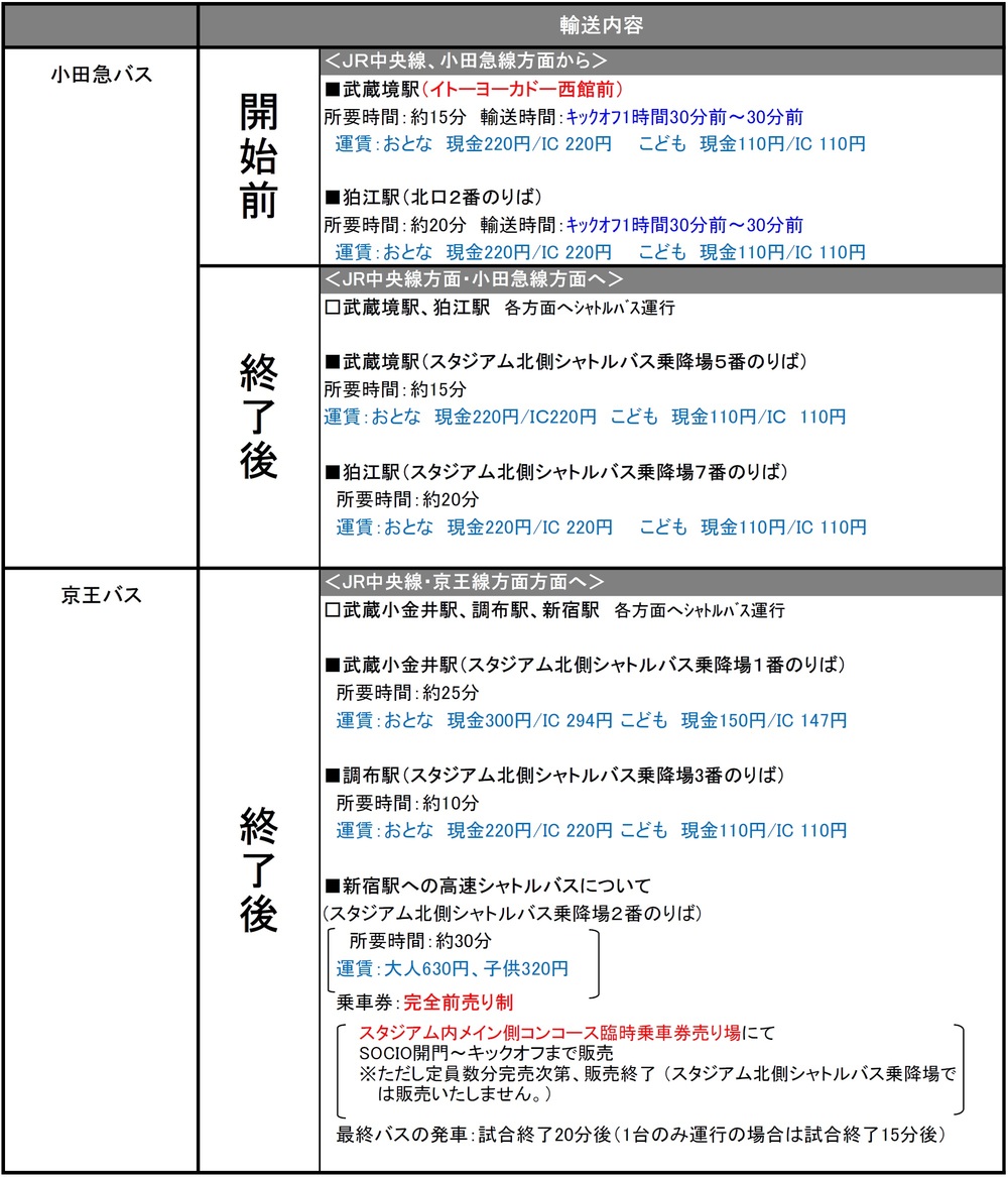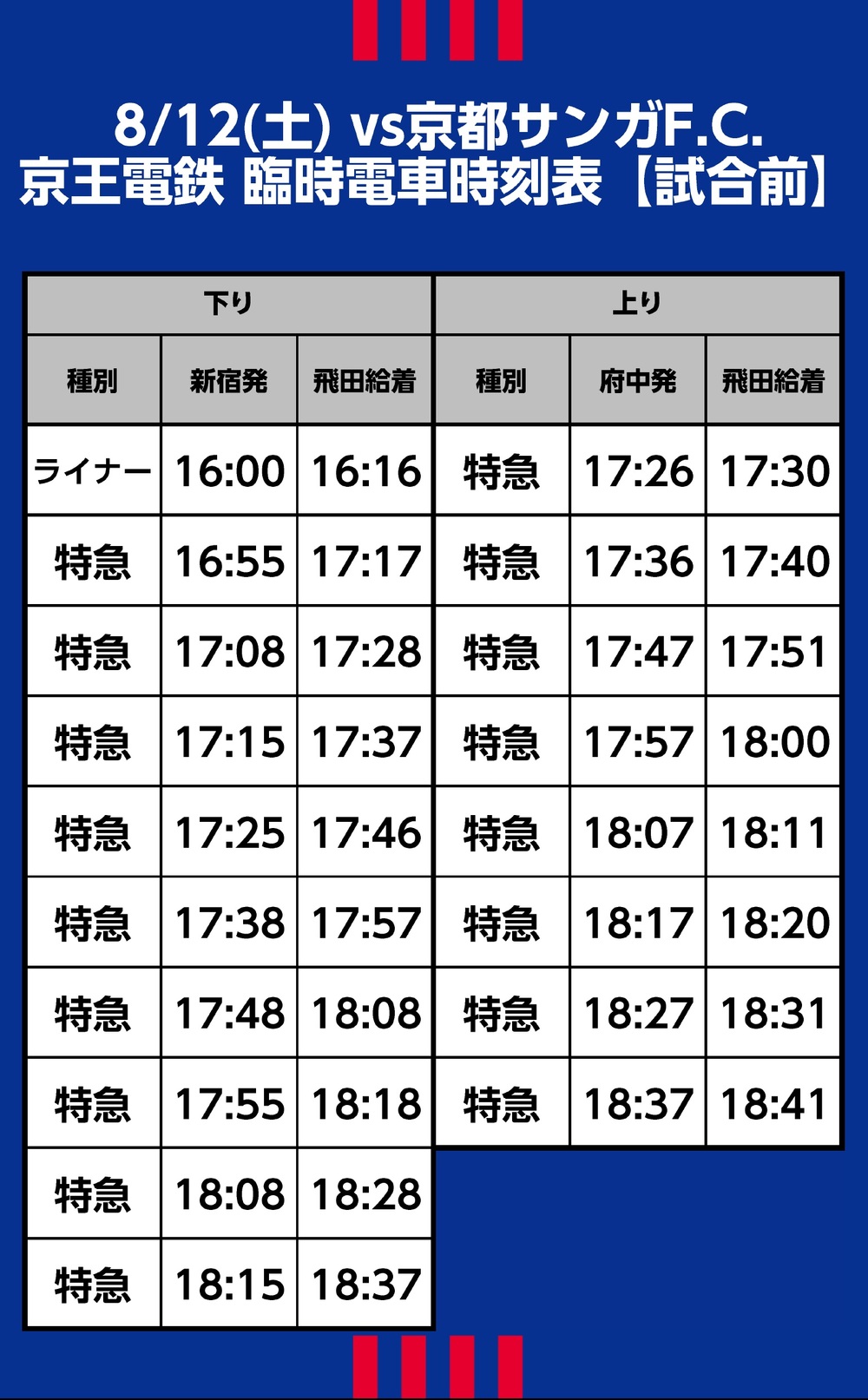 8月12日(土) 2023明治安田生命J1リーグ 第23節 vs 京都サンガF.C.(19:00キックオフ/味の素スタジアム)にて運行される臨時交通アクセス(鉄道)、シャトルバス・路線バスについてご案内いたします。