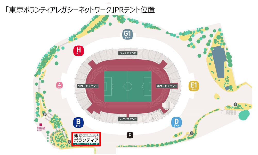 国立競技場Bゲート前に「東京ボランティアレガシーネットワーク」PRテントを出展して、ノベルティの配布、登録者へのプレゼントなどをご用意してお待ちしております!