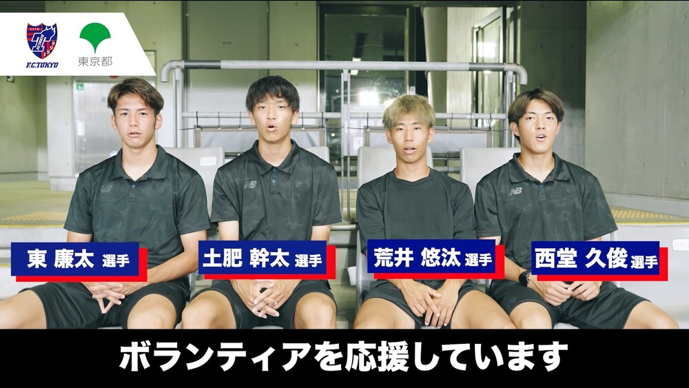 FC東京が実施した新人選手運営ボランティア研修に参加した選手たちが登場する「東京ボランティアレガシーネットワーク」PR動画を、都内のサイネージや対象試合当日の国立競技場大型映像機で放映いたします。また公式SNSでも発信いたします。