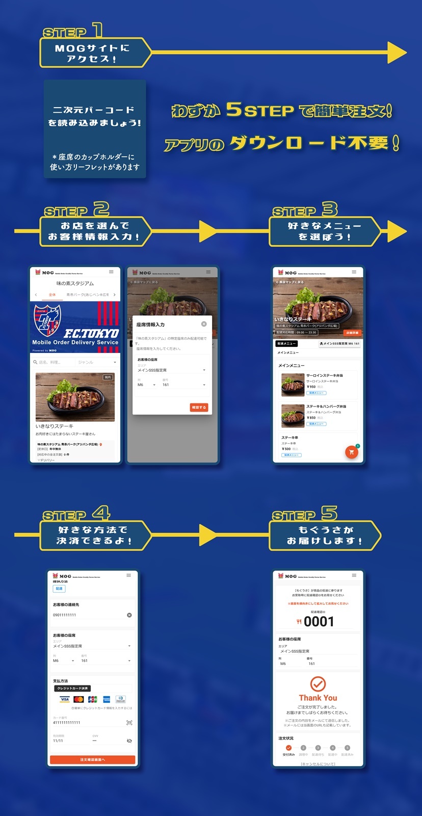 対象となる席種の座席から、ご自身のスマートフォンで注文・決済が可能となり、デリバリースタッフが座席まで商品をデリバリーするサービスとなっております。