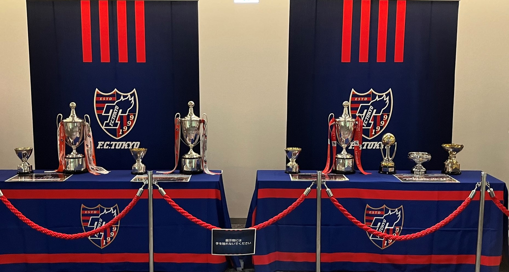 これまでに獲得したナビスコカップ(2009)、スルガ銀行チャンピオンシップ(2010)、J2リーグ優勝シャーレ(2011)、天皇杯(2011)の優勝トロフィーを展示します。