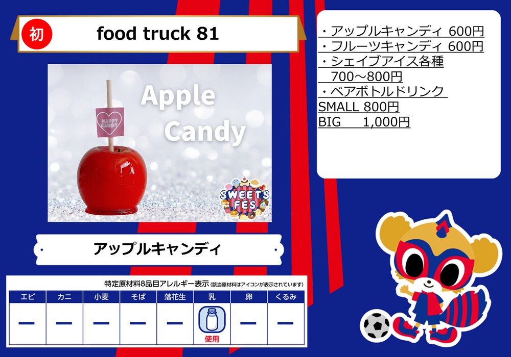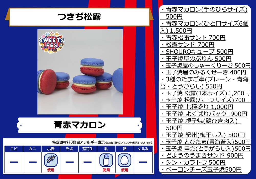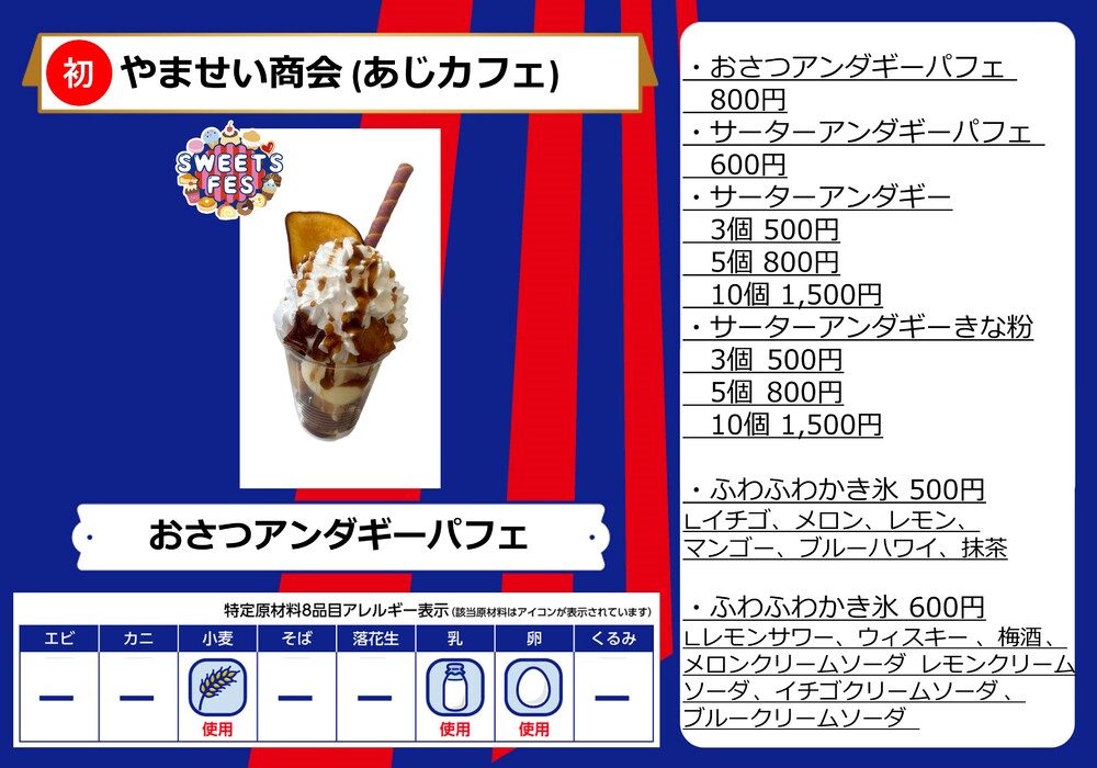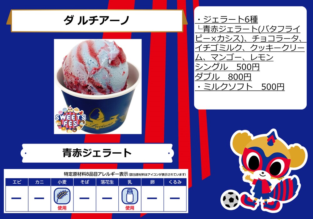 この試合では「SWEETS FES」を開催いたします!普段の青赤パークとは一味違い、スイーツの店舗を多くお楽しみいただけます!
