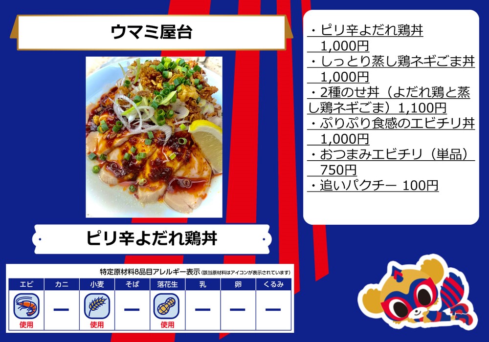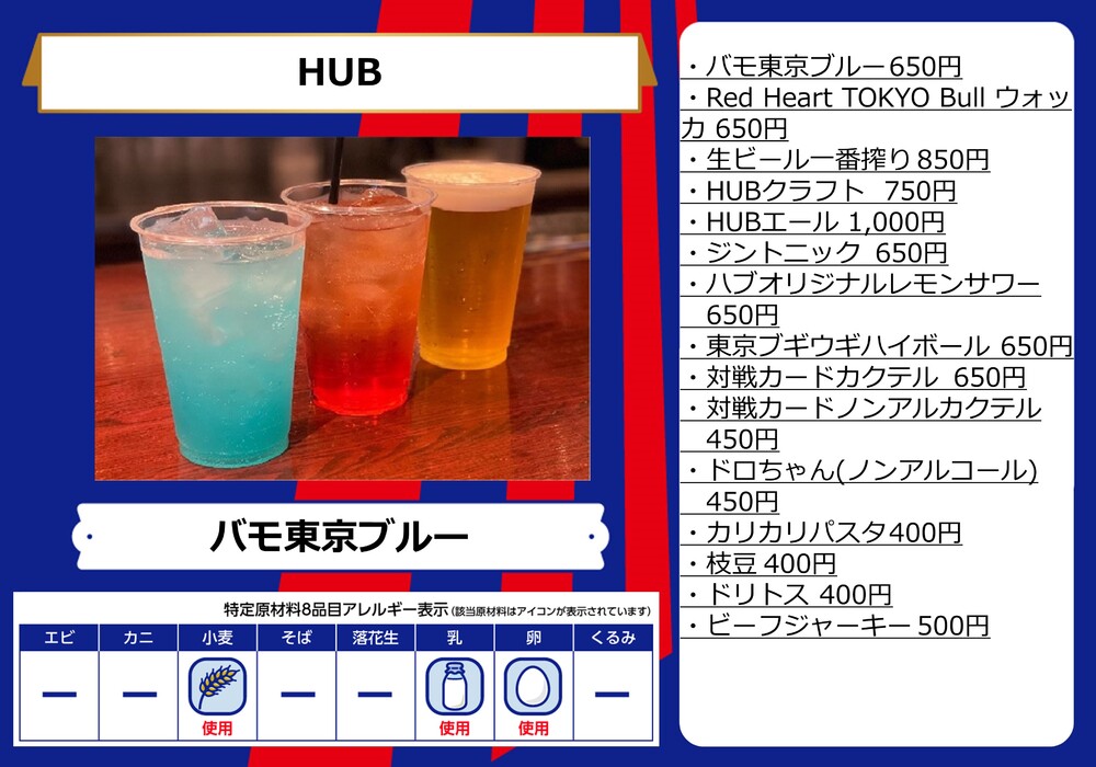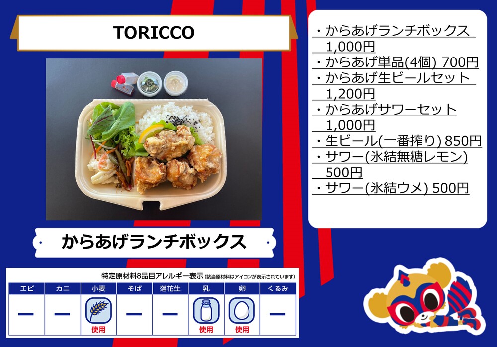 9月23日(土祝)サガン鳥栖戦の青赤パーク supported by TOKYO GAS(場外)およびスタジアム内コンコース(場内)売店にて販売するフードメニューとなります。