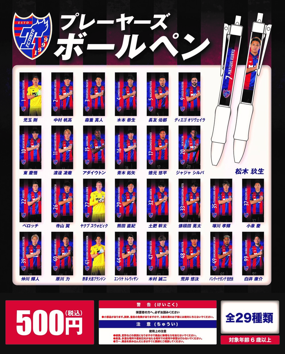 ホームゲーム時に、日付、対戦相手の入ったマッチデーグッズを販売いたします。選手も毎回異なります!試合観戦の記念にぴったりな商品となっております。