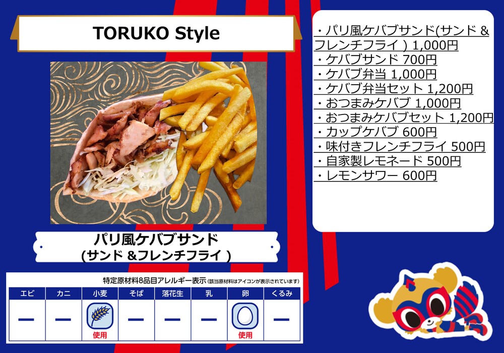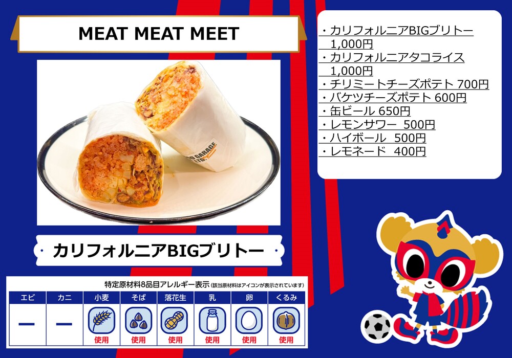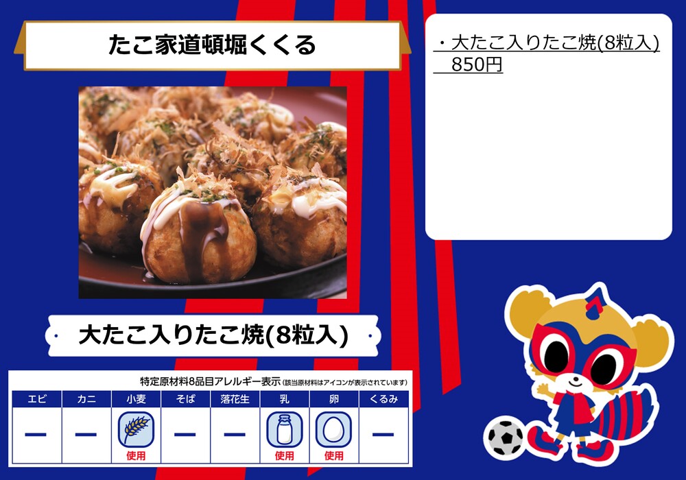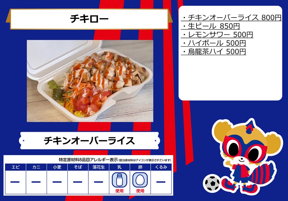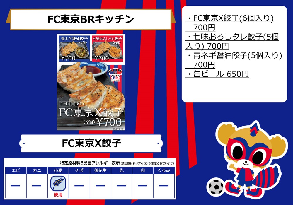 10月1日(日)ガンバ大阪戦の青赤パーク supported by TOKYO GAS(場外)およびスタジアム内コンコース(場内)売店にて販売するフードメニューとなります。