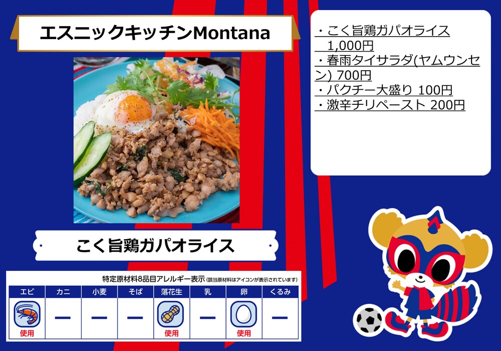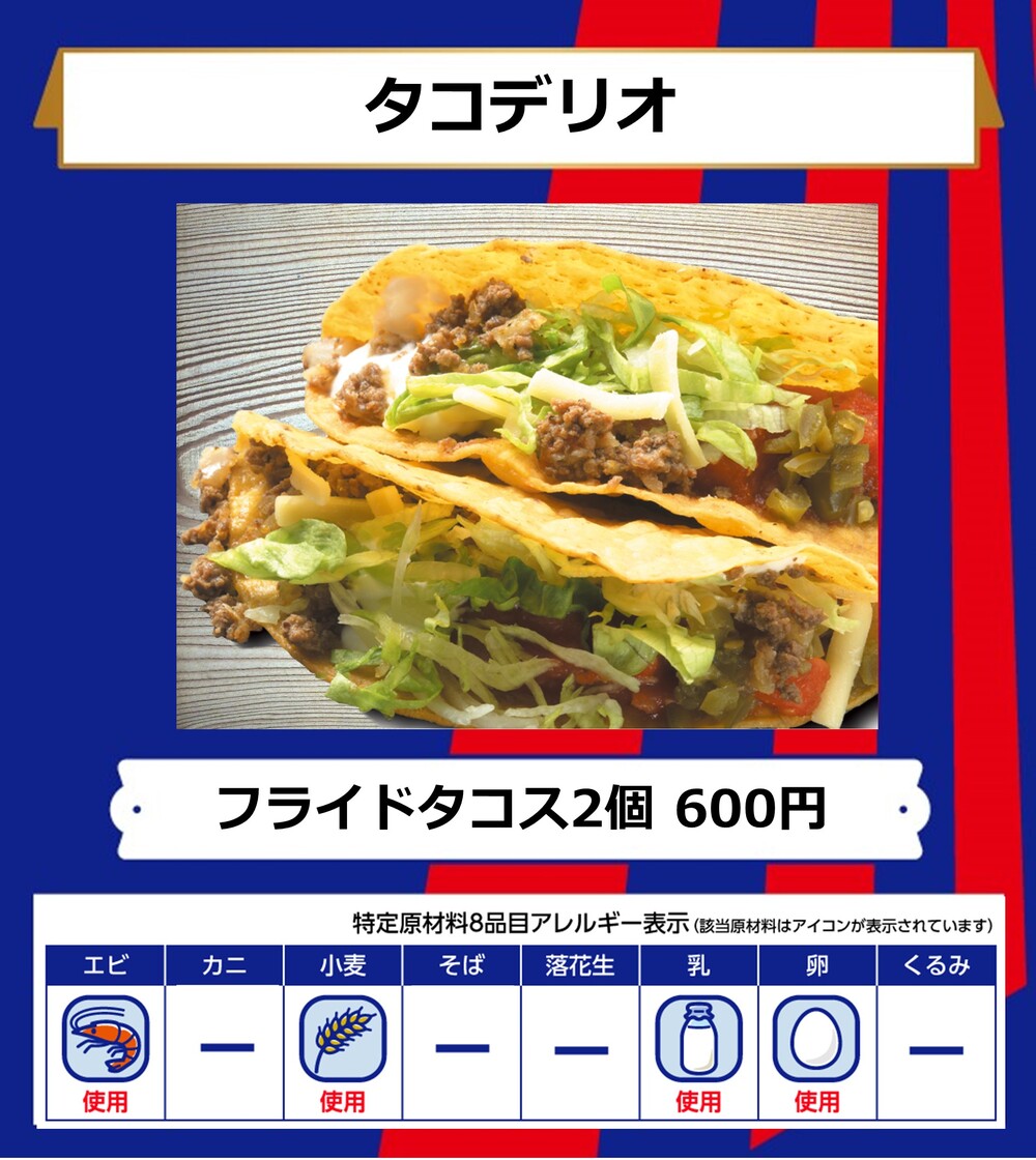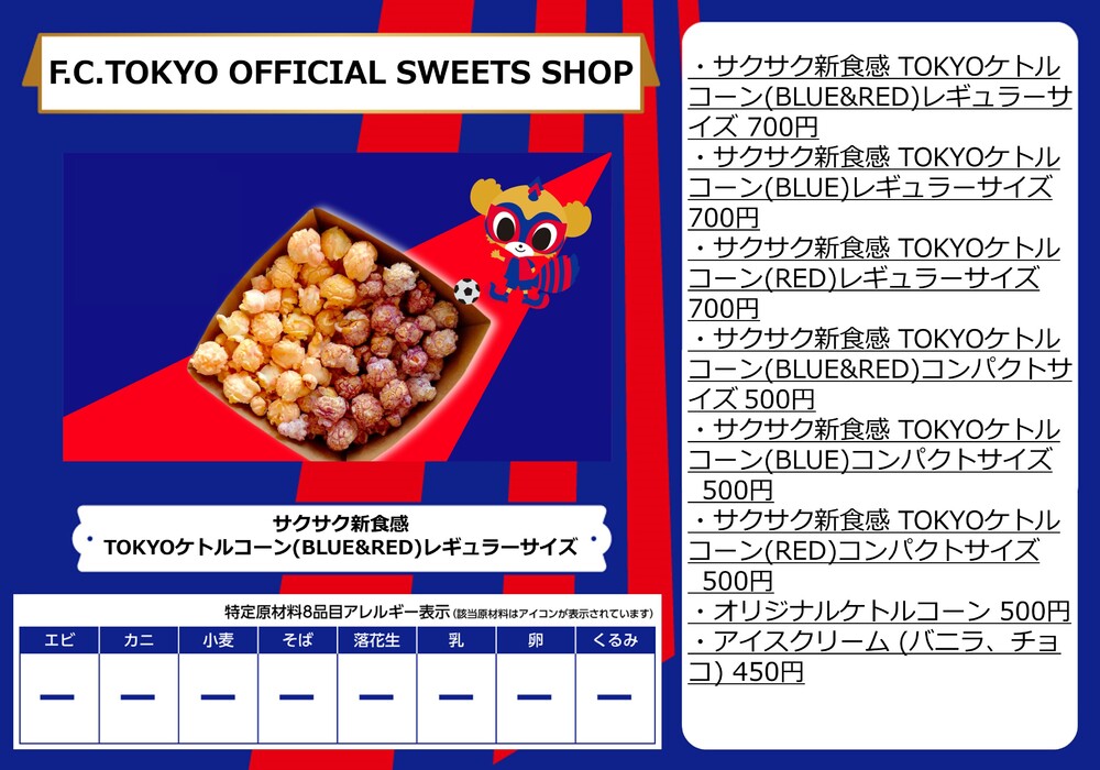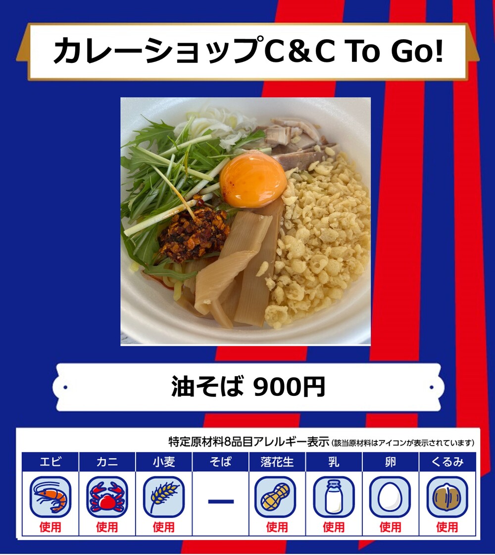 10月1日(日)ガンバ大阪戦の青赤パーク supported by TOKYO GAS(場外)およびスタジアム内コンコース(場内)売店にて販売するフードメニューとなります。