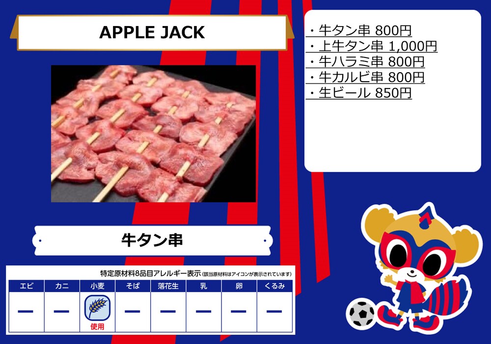 ・スタジアム内コンコース(場内)売店のおすすめメニューを更新いたしました。