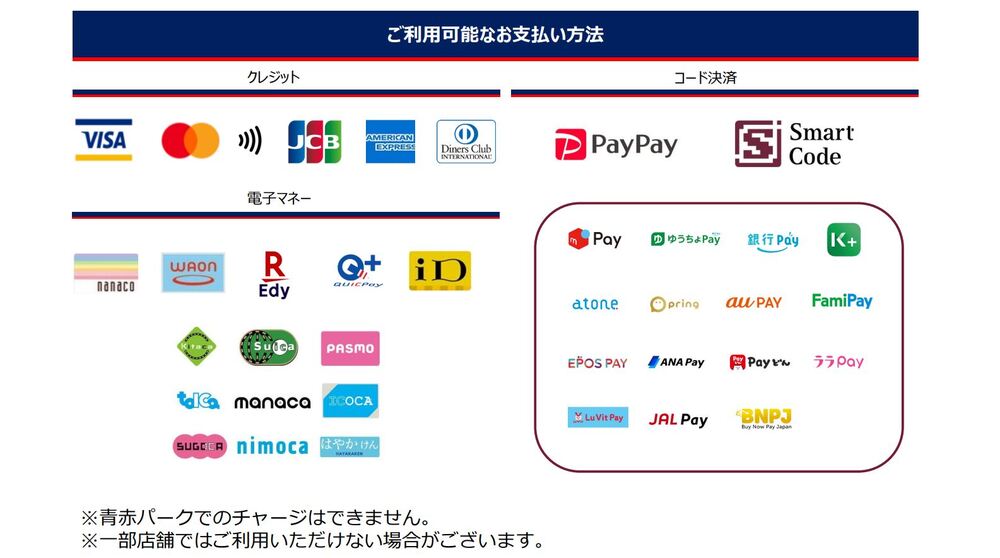 □青赤パークにてご利用いただける電子マネー