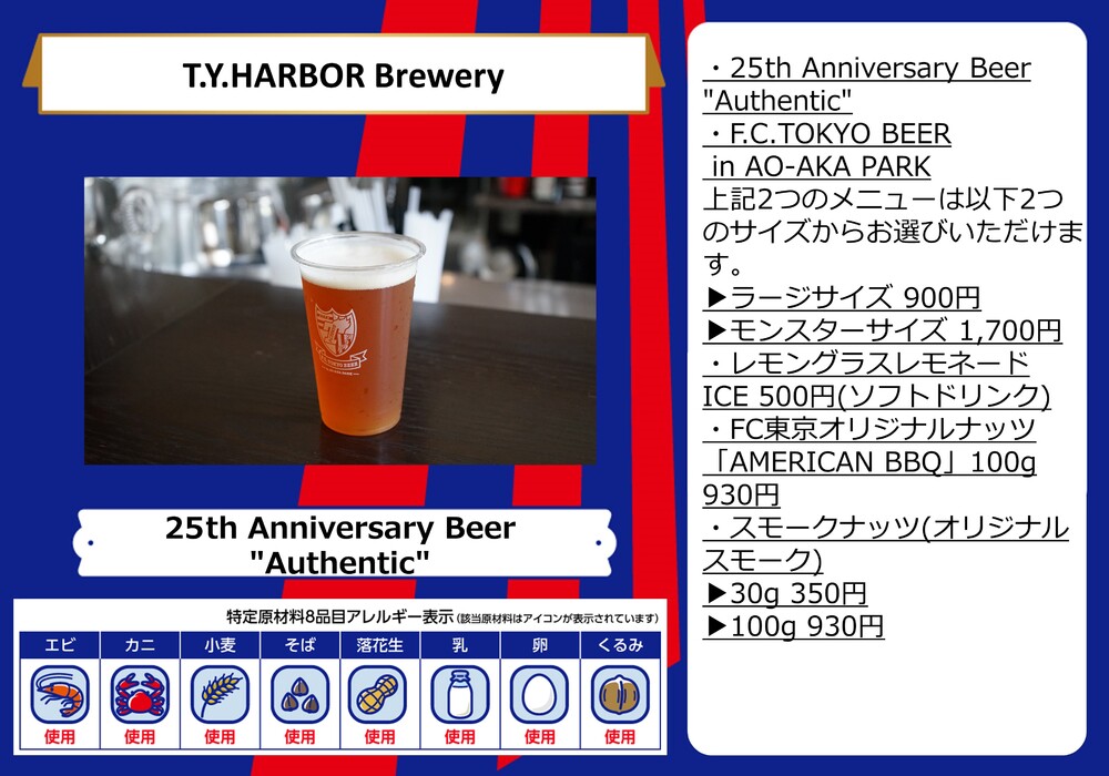 T.Y.HARBOR Breweryでは、25th Anniversary Beer “Authentic”を販売!25周年記念試合を青赤パークから盛り上げます!