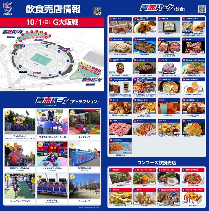 【9/27追記】10/1(日) G大阪戦 飲食情報(青赤パーク&コンコース売店)
