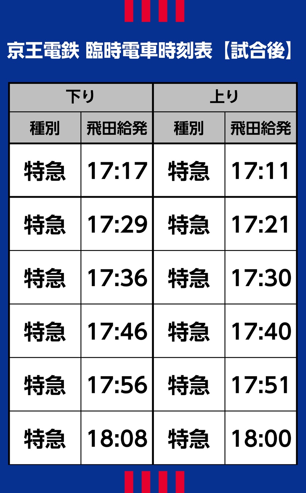 下り…飛田給発17:17~18:08の特急/計6本