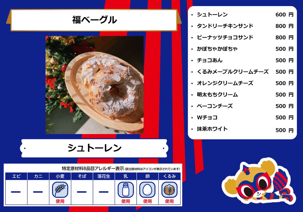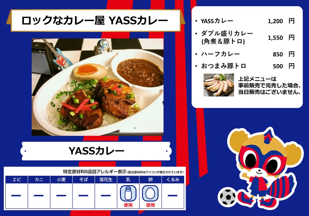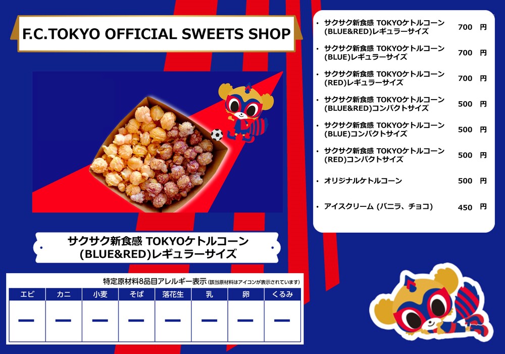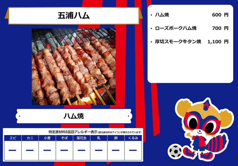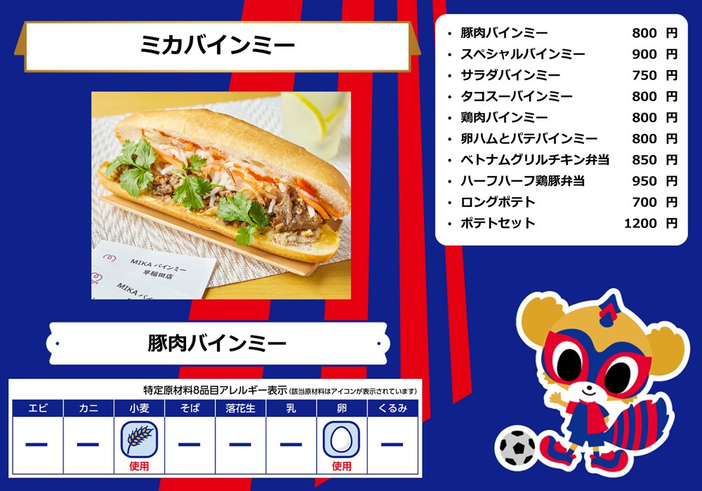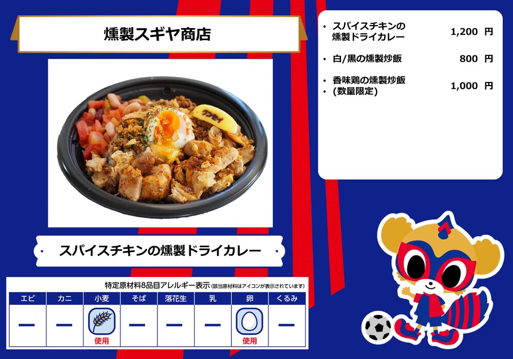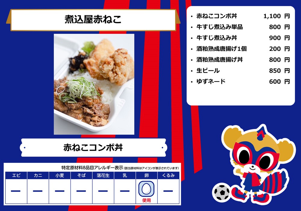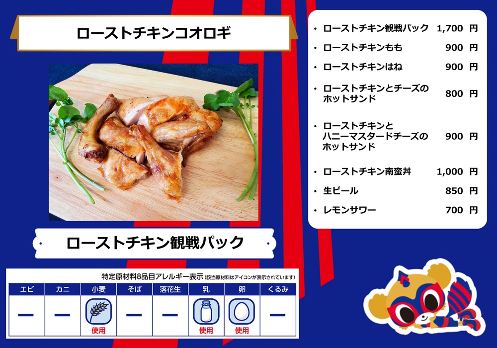 11月25日(土)北海道コンサドーレ札幌戦の青赤パーク supported by TOKYO GAS(場外)、スタジアム内コンコース(場内)売店にて販売するフードメニューとなります。
