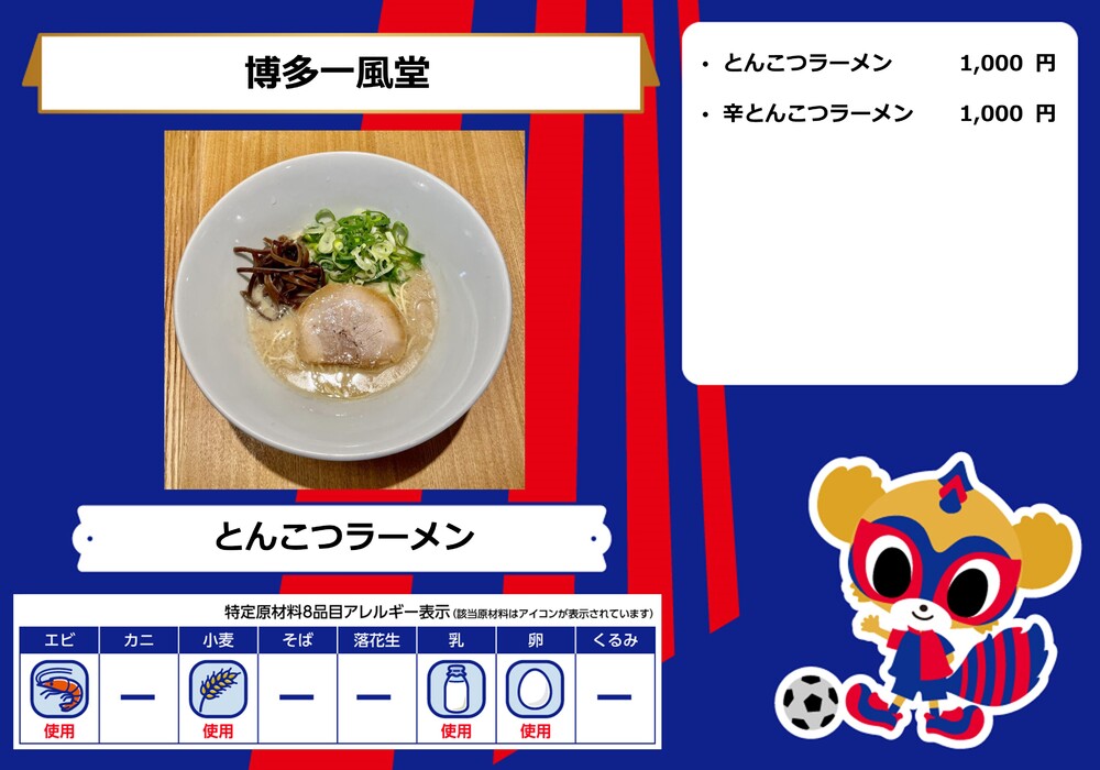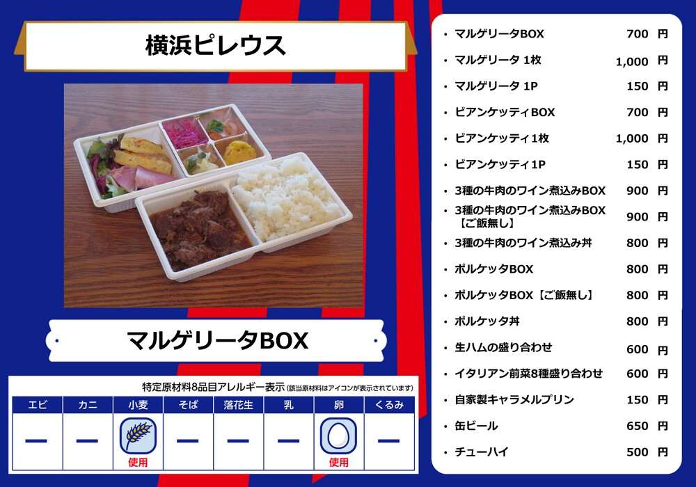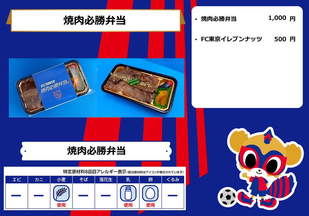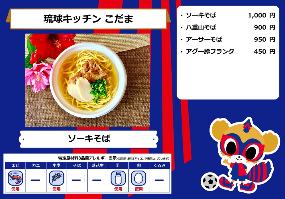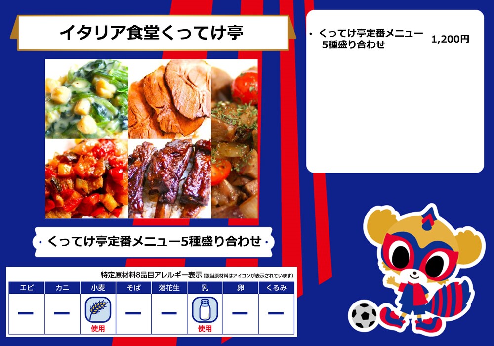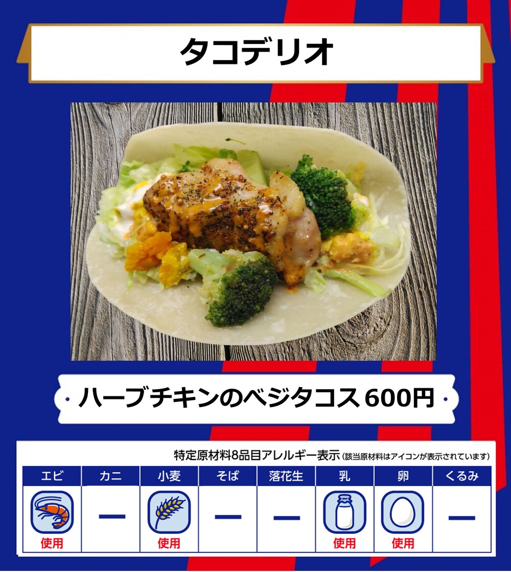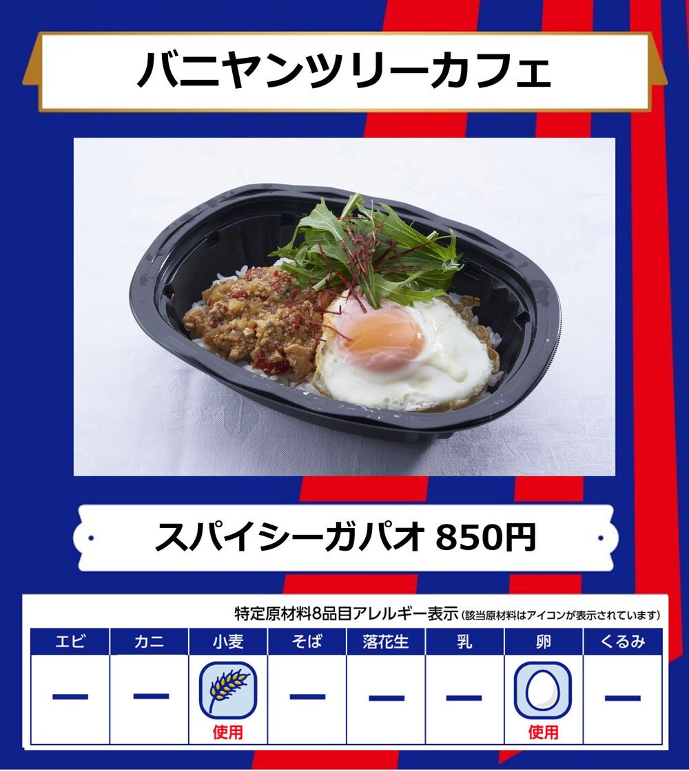 11月25日(土)北海道コンサドーレ札幌戦の青赤パーク supported by TOKYO GAS(場外)、スタジアム内コンコース(場内)売店にて販売するフードメニューとなります。