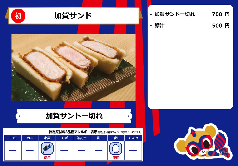 ・2012~2014シーズンにFC東京に所属しており、現在はブラウブリッツ秋田に所属している加賀健一選手が手掛ける加賀サンドの出店が決定いたしました。