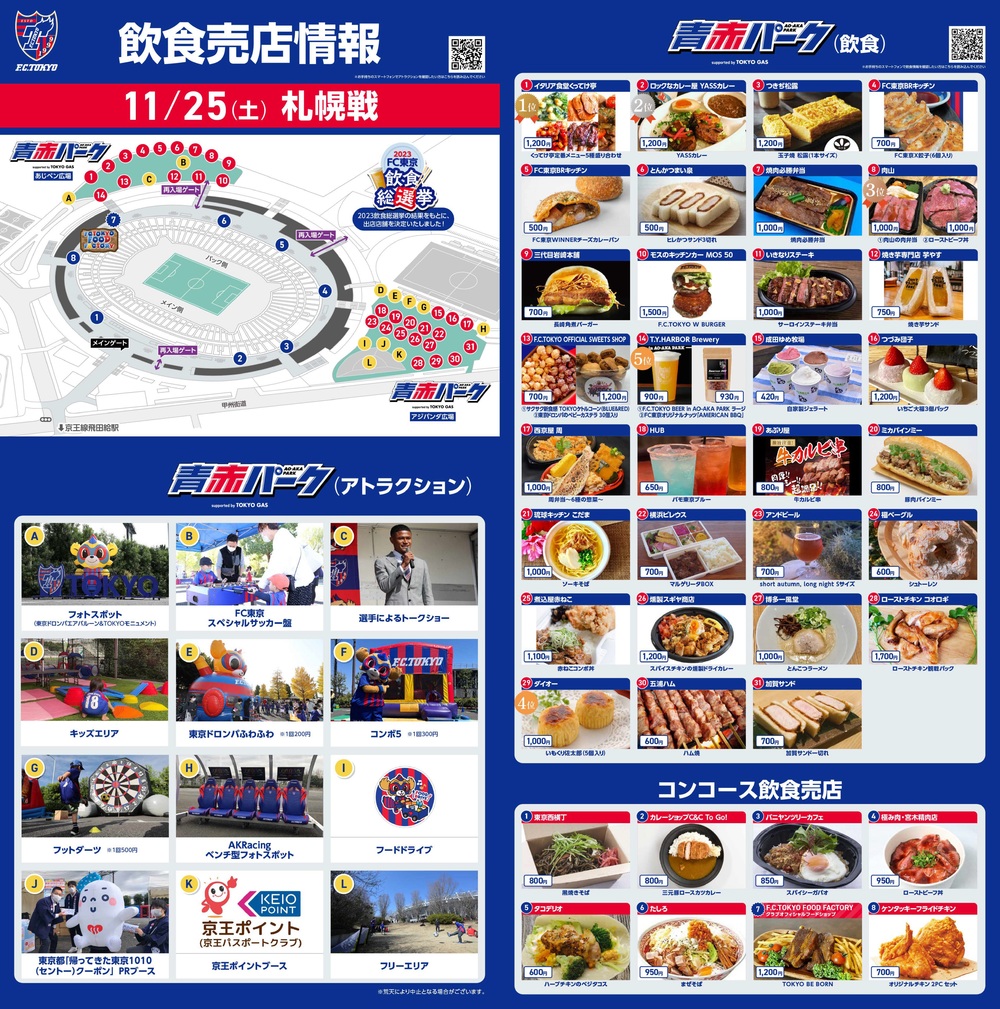 【11/22追記】11/25(土) 札幌戦 飲食情報(青赤パーク&コンコース売店)