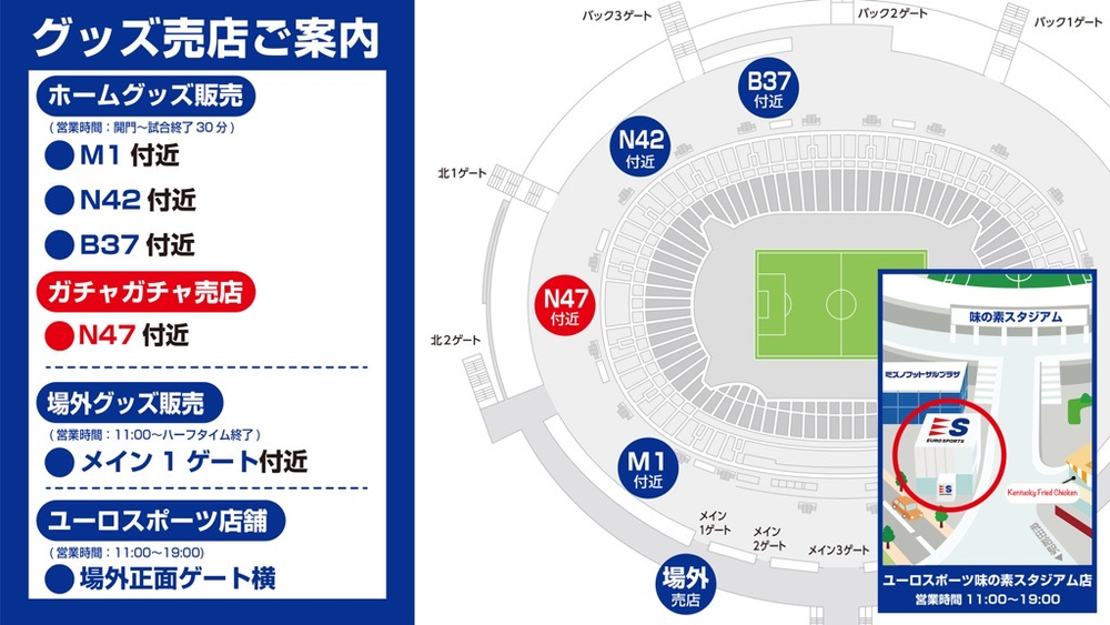 勝利試合の試合終了後から閉店までスタジアム内ホーム側グッズ売店のみ