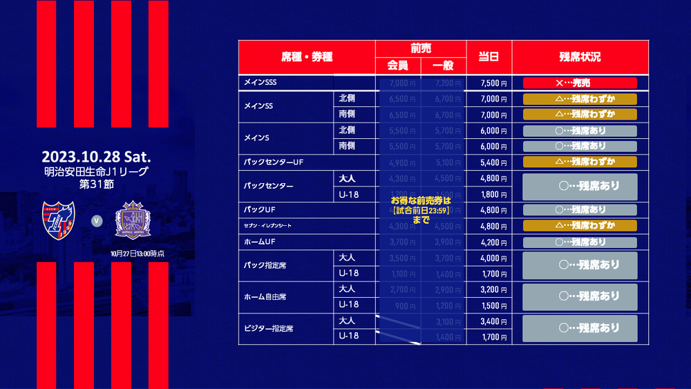 チケットFC東京(Jリーグチケット)でのみ販売いたします。