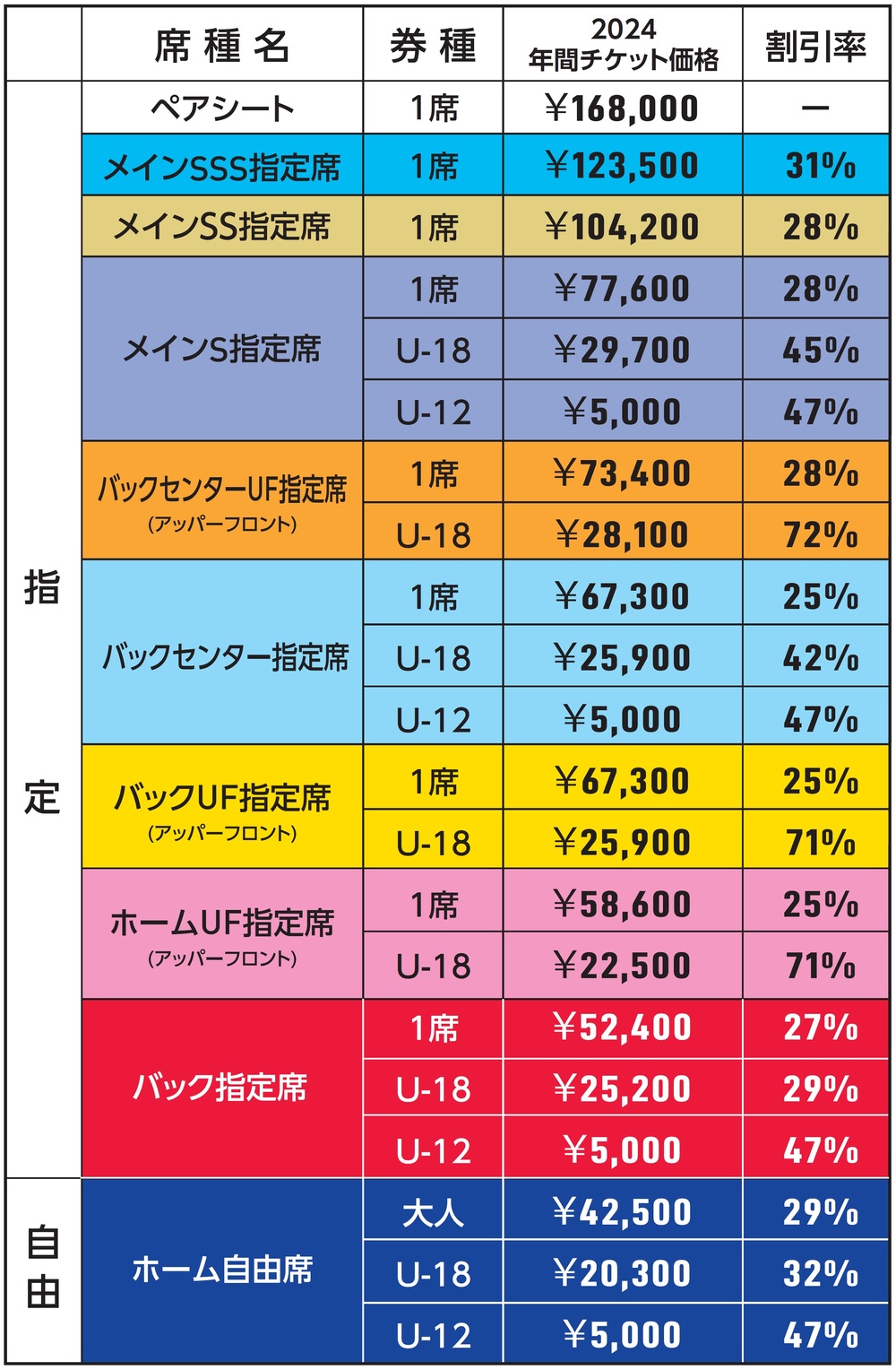 ◇2024シーズン席割およびチケット販売価格についてはこちら