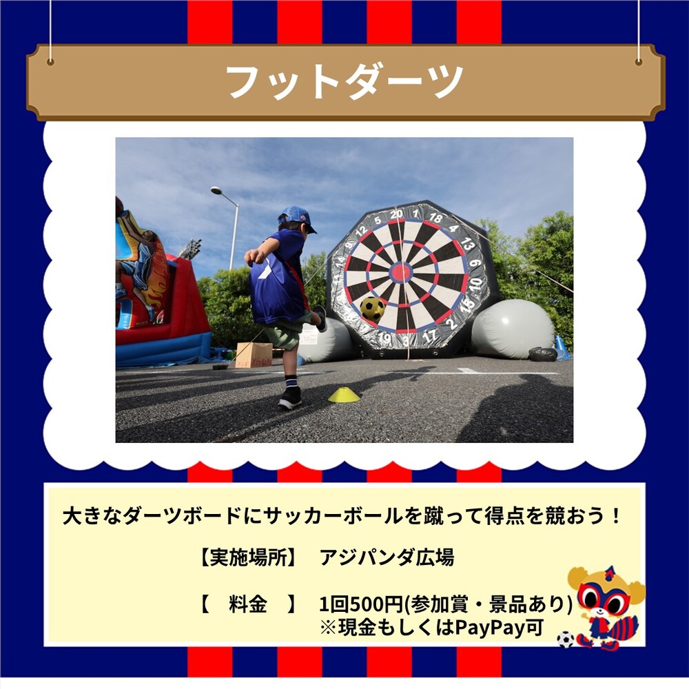 大人気のフットダーツが登場します!子どもから大人まで、試合前にアトラクションを存分に楽しみましょう!