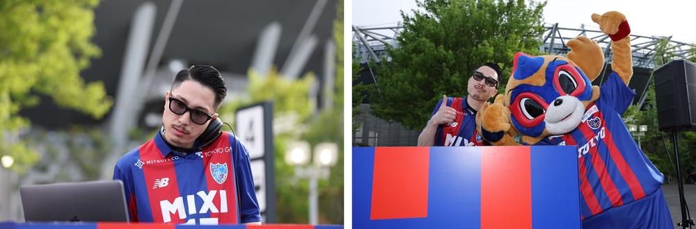 あじペン®広場、アジパンダ広場にて開催される青赤パークにてDJパフォーマンスを実施いたします。当日は過去に青赤パークやスタジアム内でDJのパフォーマンスを行ってくださったDJ SHINGOさんと、DJ YUMAさんに来場いただく他、FC東京サポーターとしておなじみのお笑い芸人“ゆってぃ”さんと“ライオンヘッドのモジャ”さんが行っているYouTube番組「バリ3TV」のみなさんに来場いただき、DJのプレイを行っていただきます。音楽を聴きながら試合までの間、青赤パークを楽しんでください!
