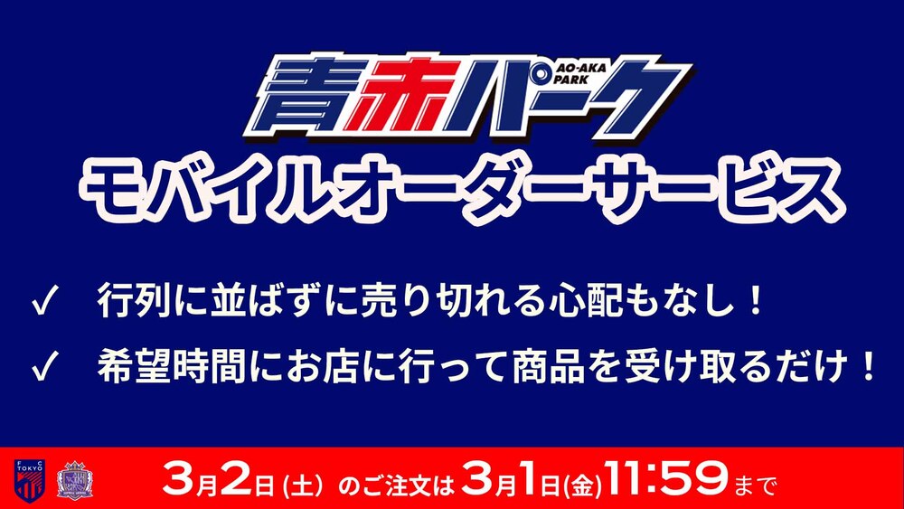 3/2(土) 広島戦 青赤パーク モバイルオーダーサービスのお知らせ