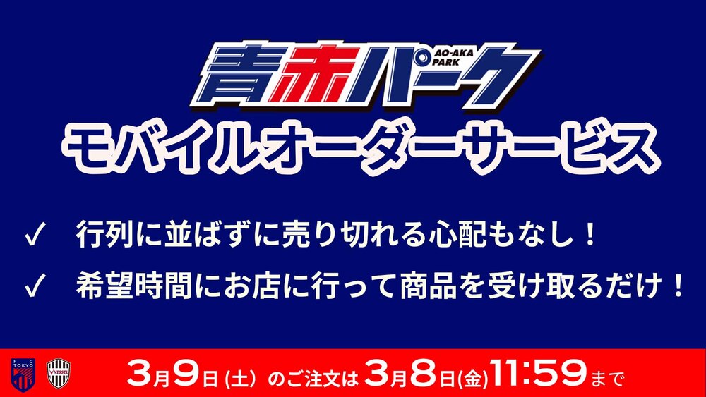 3/9(土) 神戸戦 青赤パーク モバイルオーダーサービスのお知らせ