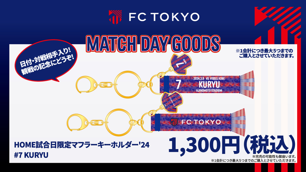 3月9日(土)2024明治安田J1リーグ 第3節 vsヴィッセル神戸(16:00キックオフ/味の素スタジアム)にて、グッズ売店・ガチャガチャコーナーを実施いたします。